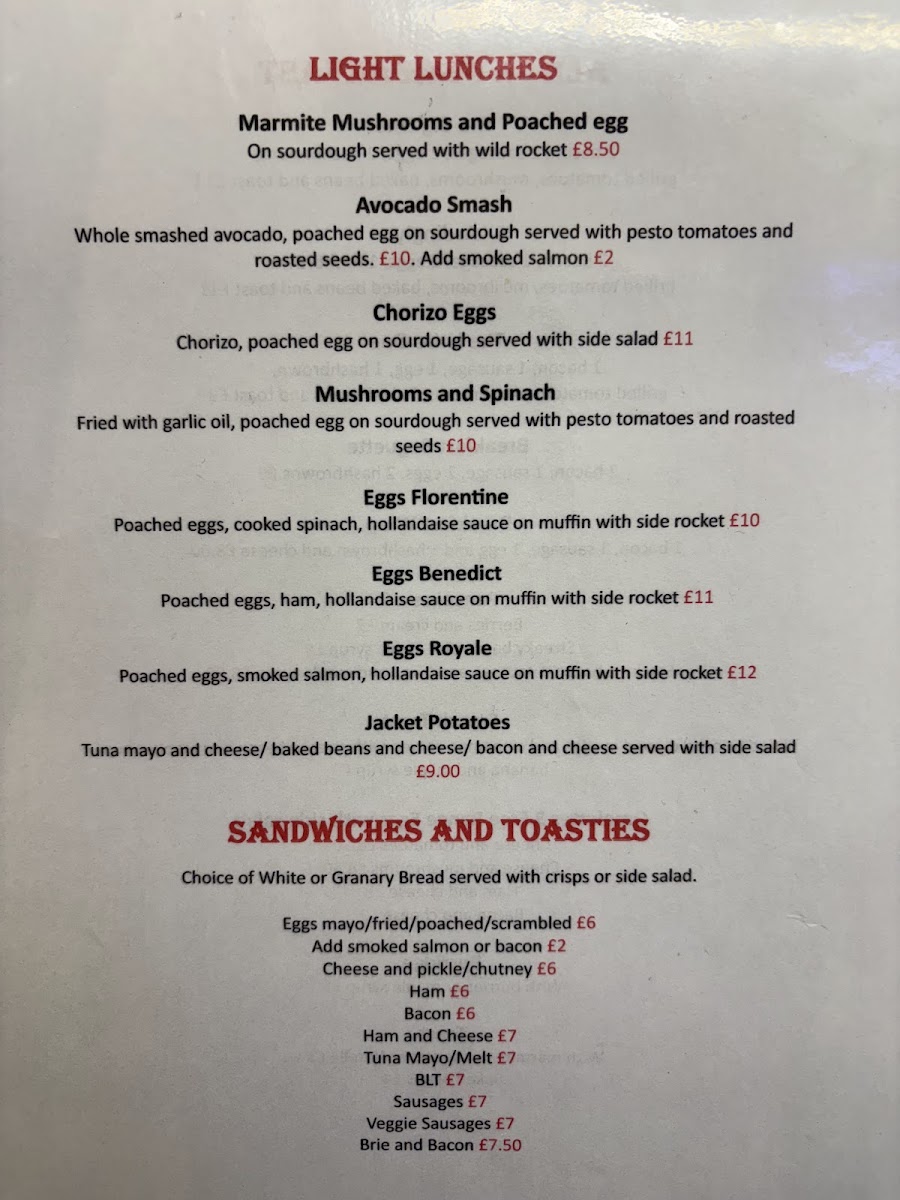 The sandwich and toastie selection is equally enticing, boasting classics like BLT and scrumptious brie and bacon. Don’t miss out on the warm, welcoming atmosphere created by the friendly staff, making every visit feel special.